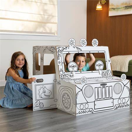 Az XL méretű játszóház ösztönzi a célirányos szerepjátékot, a nyelvi fejlődést és a mesemondást, miközben a gyerekek kifestik, díszítik és személyre szabják a saját terüket.
