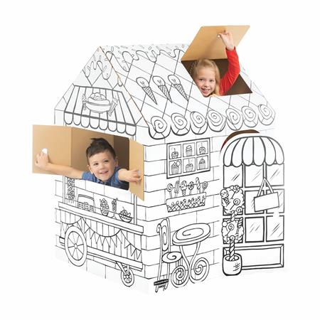 Az XL méretű játszóház ösztönzi a célirányos szerepjátékot, a nyelvi fejlődést és a mesemondást, miközben a gyerekek kifestik, díszítik és személyre szabják a saját terüket.