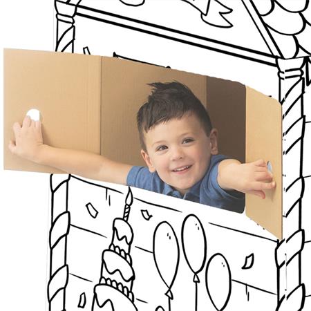 Az XL méretű játszóház ösztönzi a célirányos szerepjátékot, a nyelvi fejlődést és a mesemondást, miközben a gyerekek kifestik, díszítik és személyre szabják a saját terüket.