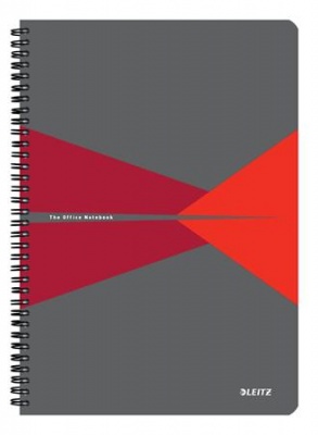 Spirálfüzet, A4, vonalas, 90 lap, laminált karton borító, LEITZ "Office", szürke-piros