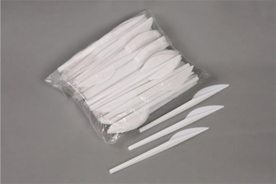 Fehér, műanyag eldobható kés, kerti partik, büfék és fesztiválok elengedhetetlen kelléke.